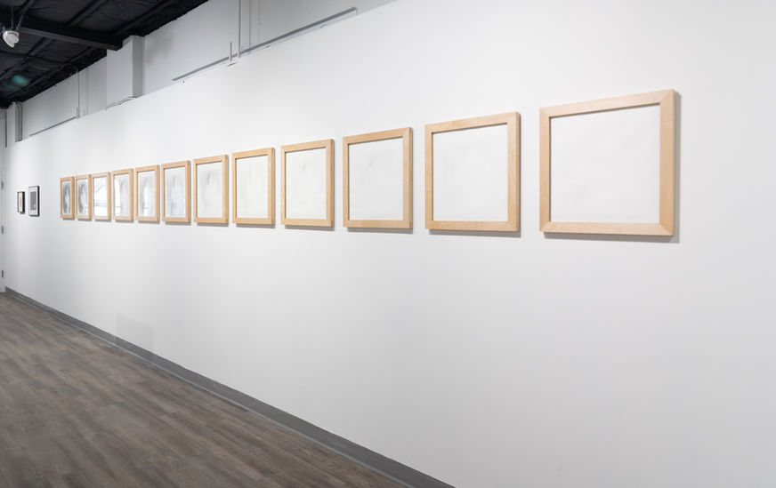 A series of sequential self-portraits where exposure is determined by the number of breaths taken. Starting with one breath on the left, each frame is exposed for an additional one until the last frame on the far right, which is exposed for 12 breaths time. The more breaths, the longer the aperture stays open; and the longer the aperture stays open, more light is let in. The progression of longer exposures results in the artist disappearing from the frame due to overexposure.